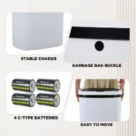 - Power Saving: Equipped with a motion sensor, the trash can operates efficiently with just 4 AA batteries, allowing for long-term usage without frequent replacements. It’s designed to save energy, making it convenient for everyday use.