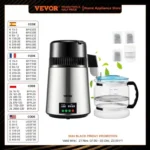 VEVOR’s water distiller with an upgraded panel is a perfect tool for purifying your water and helping you get a constant supply of distilled water, whether you’re at home or in the office. This distiller can effectively dissolve VOCs and filter other impurities, and the distilling speed reaches up to 0.3 Gal (1 L) of water per hour. What’s more, as an ideal match for a tiny kitchen, it is not much bigger than a kettle in size and won’t take up so much of your space.